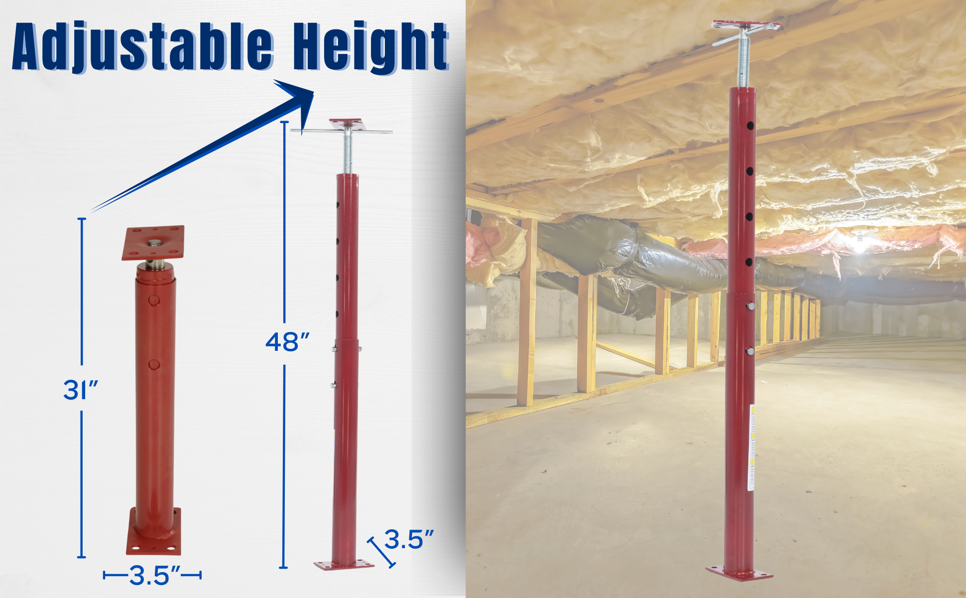 FJB-48 FJB-48Steel Basement Floor Jack 48 In. Maximum Height 6,863 Lb. Capacity RedHeight Minimum/Maximum (in.): 31 to 48