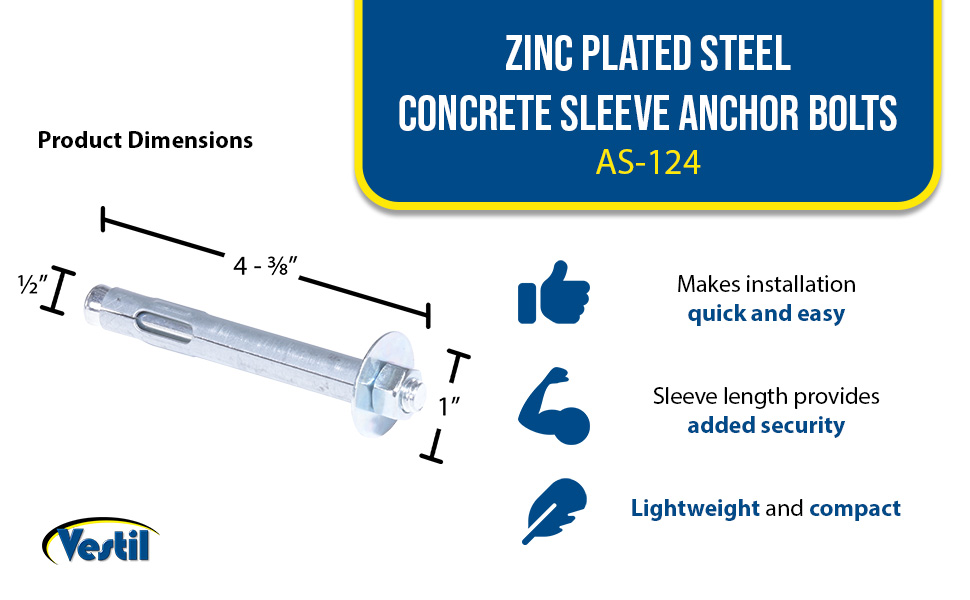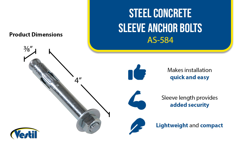 AS-584-12PK AS-584-12PKSteel Concrete Sleeve Anchor Bolts 12 Pack 3/8 In. x 4 In. SilverPackage (qty.): 12