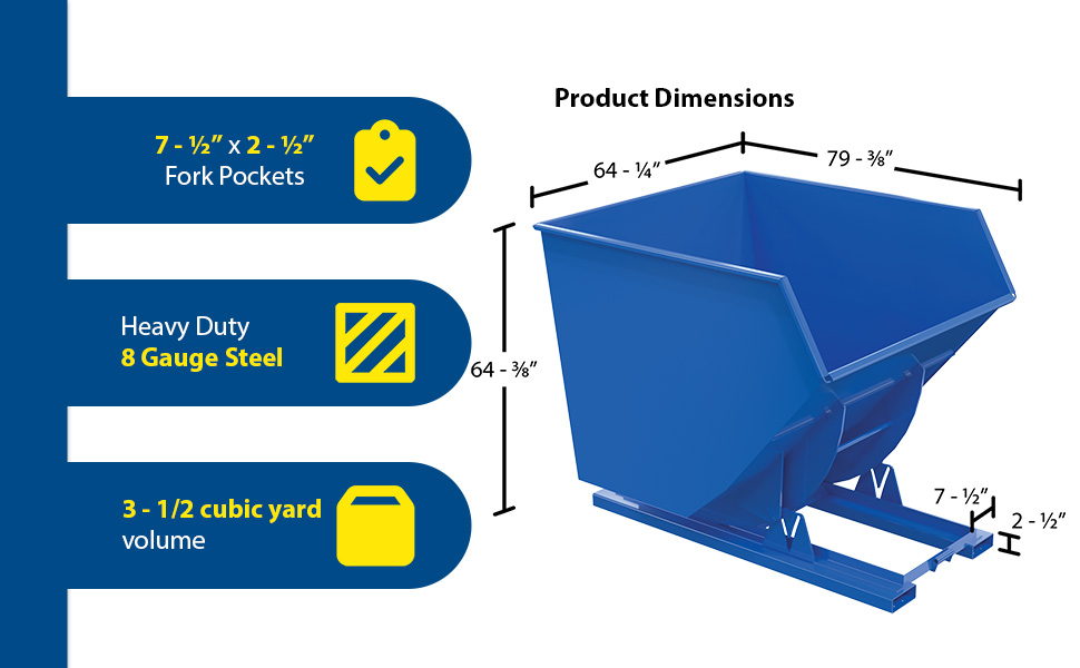D-350-HD-NB D-350-HD-NBSteel Heavy Duty No Bump & Dump Hopper 3-1/2 Cubic Yard 6000 Lb. Capacity BlueUniform Capacity (lb.): 6000
