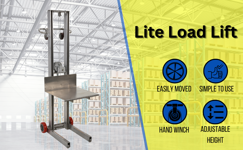 | Steel Lite Load Lift With Winch, Swivel Casters and Manual Floor Lock 24 In. x 20 In. Platform 400 Lb. Capacity Blue | Uniform Capacity (lb.): 400 Platform Width (in.): 24 | 198 |