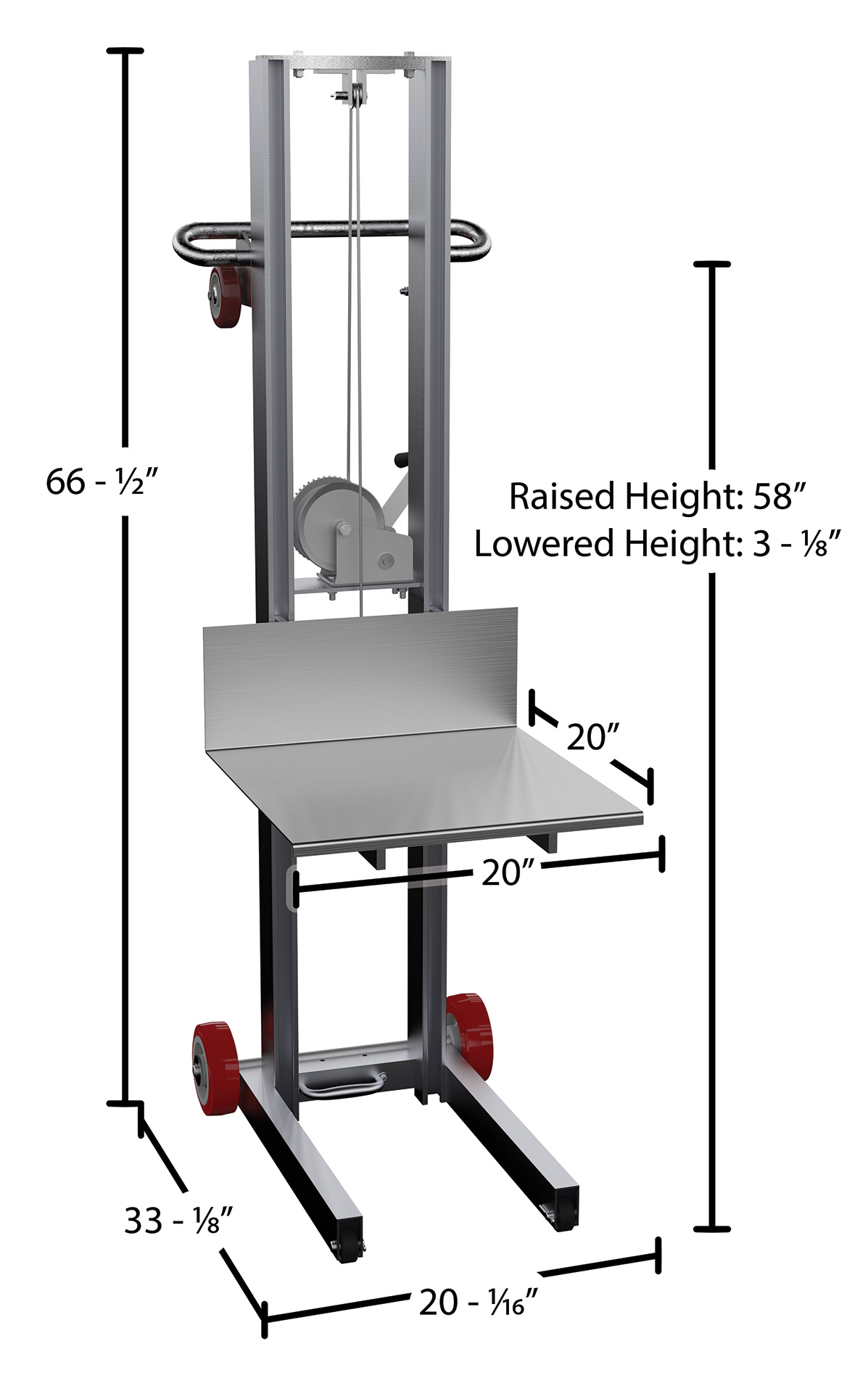 ALLW-2020-FW ALLW-2020-FWAluminum Lite Load Lift With Winch and Fixed Wheels 20 In. x 20 In. Platform 400 Lb. Capacity SilverUniform Capacity (lb.): 400