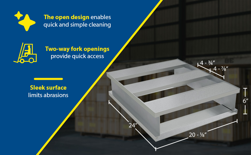 | Aluminum Heavy Duty Solid Top Half Pallet 24 In. x 48-1/8 In. x 6 In. 4000 Lb. Capacity Silver | Uniform Capacity (lb.): 4,000 Overall Width (in.): 48-1/8 | 36 |