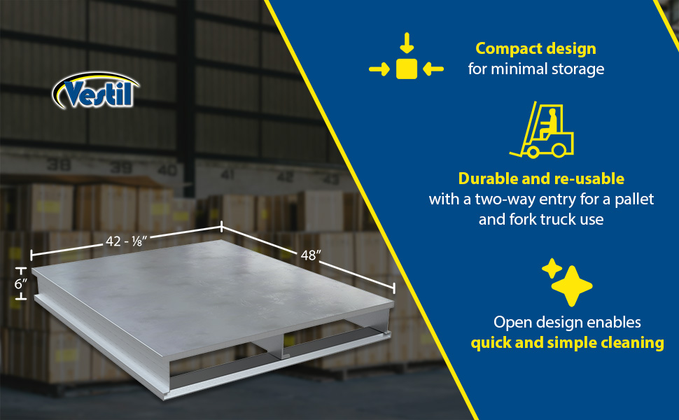 | Aluminum Heavy Duty Solid Top Pallet 48 In. x 40-1/8 In. x 6 In. 6000 Lb. Capacity Silver | Static Capacity (in.): 6,000 Dynamic Capacity (in.): 4,000 | 113 |