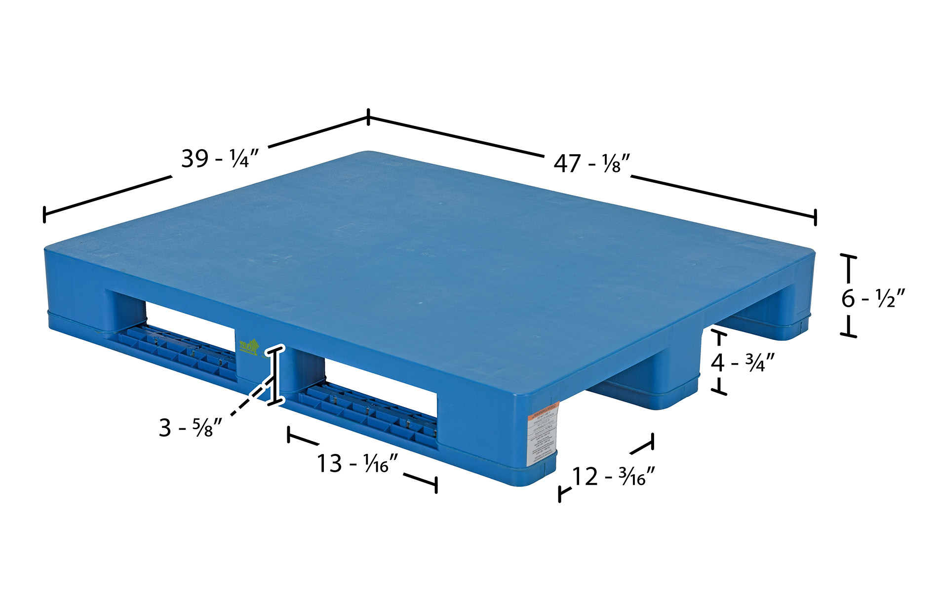 | PLPS-H | POPULAR | ![]() | 30 Days Limited Warranty | High Density Polyethylene Solid Top Rackable Pallet/Skid 39-1/4 In. x 47-1/8 In. x 6-1/2 In. 8,800 Lb. Floor Capacity Blue | Uniform Floor (static) Capacity (lb.): 8,800 Uniform Fork (dynamic) Capacity (lb.): 3,300 | 98 |