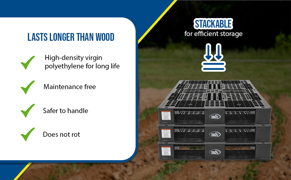 PLPG-4848-HD PLPG-4848-HDHigh Density Polyethylene Heavy Duty Rackable Pallet/Skid 47-1/4 In. x 47-1/4 In. x 5-11/16 In. 3900 Lb. Capacity BlackUniform Floor (static) Capacity (lb.): 22,000