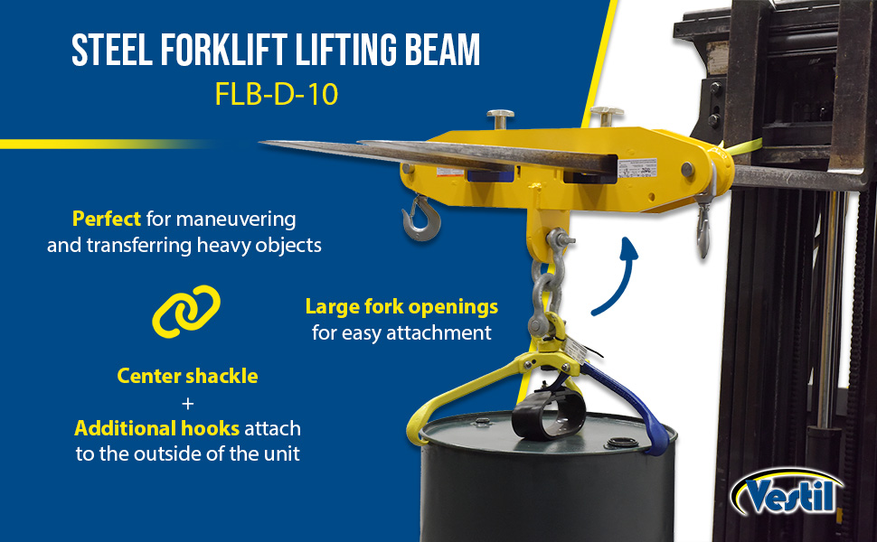 FLB-D-10 FLB-D-10Steel Forklift Lifting Beam 40 In. x 4-1/2 In. x 18-11/16 In. 10,000 Lb. Capacity YellowUniform Capacity (lb.): 10000
