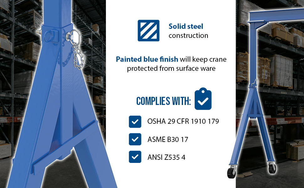 FHS-10-10 FHS-10-10Steel Fixed Gantry Crane with Ductile Steel Locking Casters 10 Ft. 10,000 Lb. Capacity BlueUniform Capacity (lb.): 10,000
