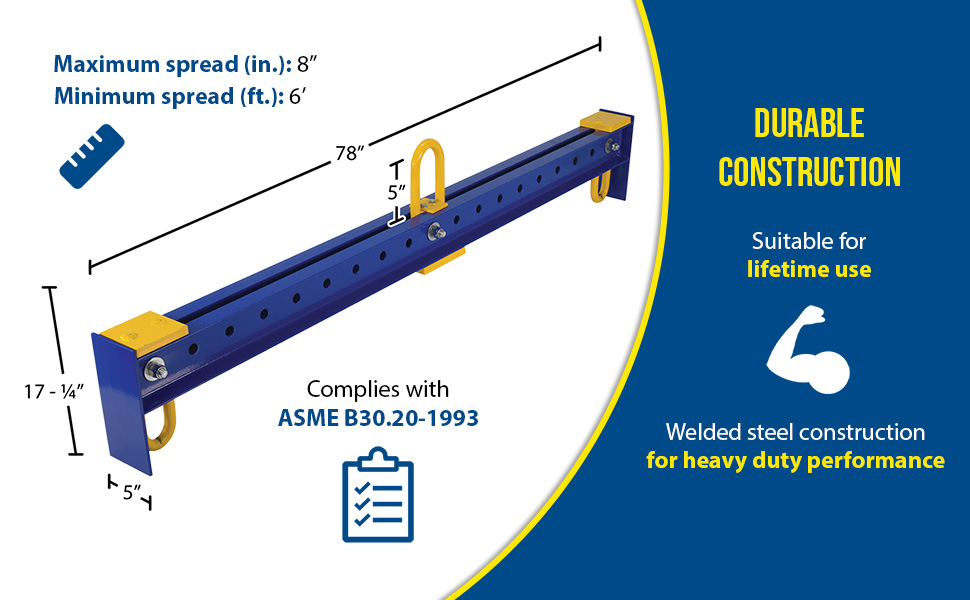 SBM-25 SBM-25Steel Adjustable Spreader Beam 78 In. Length 2,500 Lb. Capacity BlueUniform Capacity (lb.): 2,500