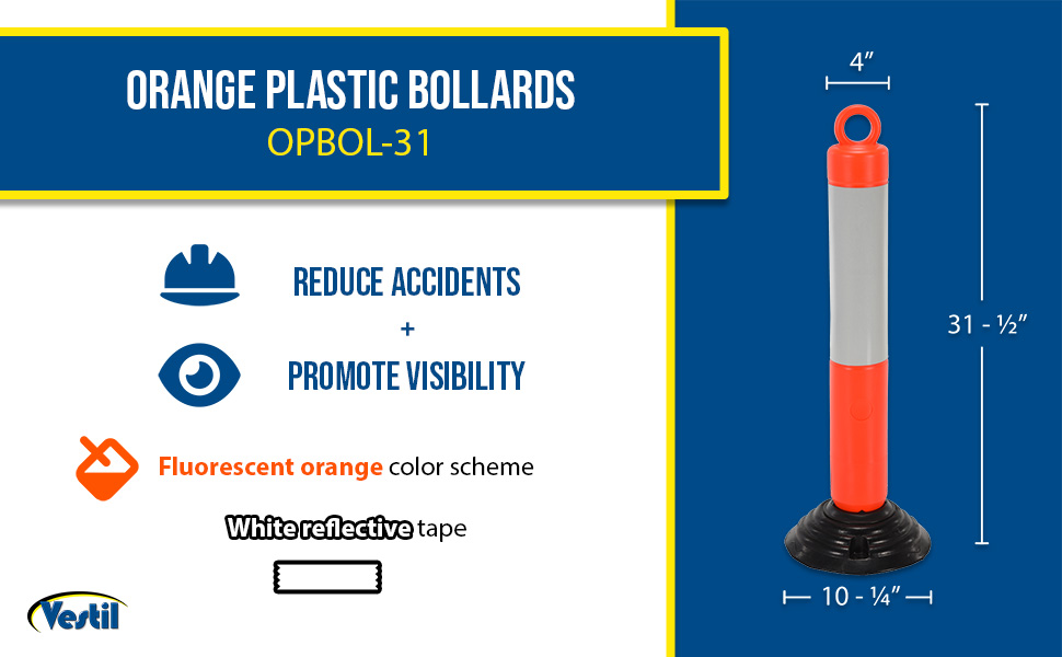 OPBOL-31 OPBOL-31Plastic Bollard 10-1/4 In. x 10-1/4 In. x 31-1/2 In. Height Fluorescent OrangeBollard Diameter (in.): 4
