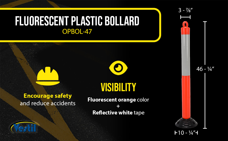 OPBOL-47 OPBOL-47Plastic Bollard 10-1/4 In. x 10-1/4 In. x 46-1/2 In. Height Fluorescent OrangeBollard Diameter (in.): 3-7/8