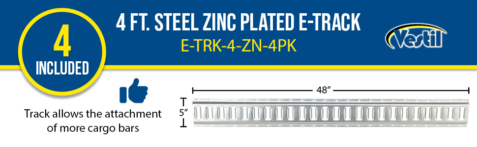 E-TRK-4-ZN-4PK E-TRK-4-ZN-4PK Steel Zinc Plated E-Track 4 Ft. Length 4 Pack Gray 90 Days Limited Warranty 24