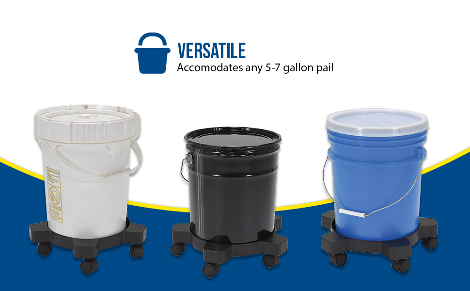 A pail dolly is a great accessory for the home or the workshop by delivering a more ergonomically friendly way to transfer products. Instead of lifting heavy pails, which can put stress on joints and muscles, this unit can be pushed and steered to the designated location. A large weight capacity and a 5-7 gallon pail accommodation, the user can efficiently move objects in a timely manner while minimizing risk of fatigue. The compact design is easily stored when not in use. Strong construction. Lightweight. Maximizes workload proficiency.