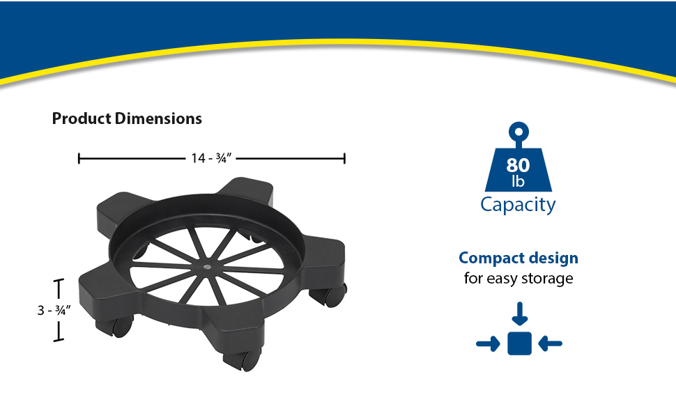 PDD-5 PDD-5Plastic Drum Dolly for 14-3/4 In. x 14-3/4 In. x 3-3/4 In. 5-7 Gallon Buckets 80 Lb. Capacity BlackUniform Capacity (lb.): 80