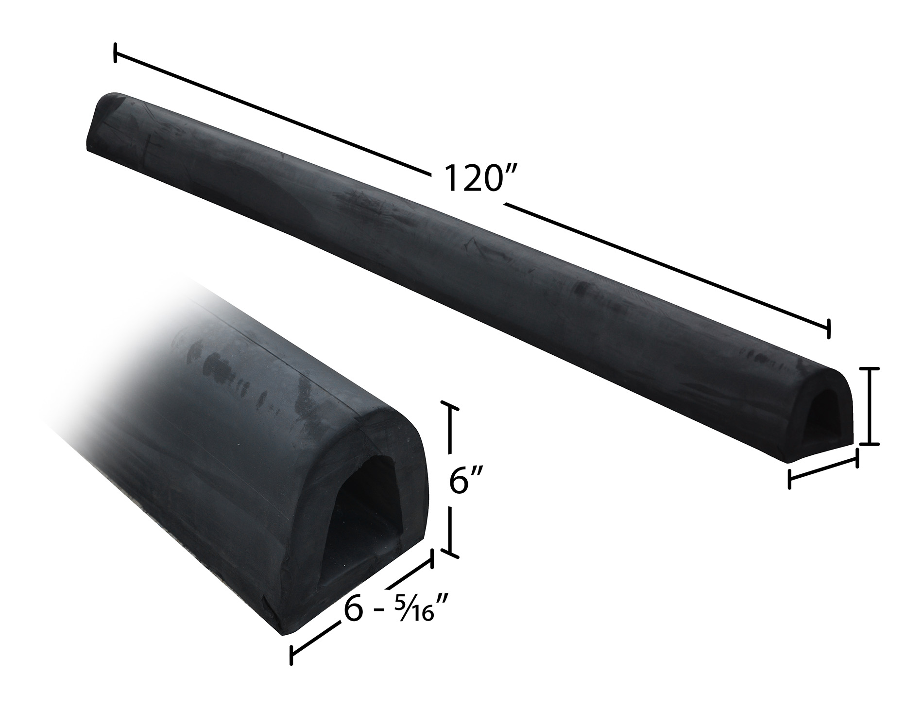Made of all weather and abrasion resistant rubber. The half-oval shape allows for effective fendering action over a wide radius. A metal plate is located inside 4" and 6" projection bumpers for support while the 2" unit comes with one washer per hole. 120" models do not include holes or support material. 120" long bumpers run longer in order to be cut to final length. Custom lengths available up to 10 feet. Installation hardware sold separately.