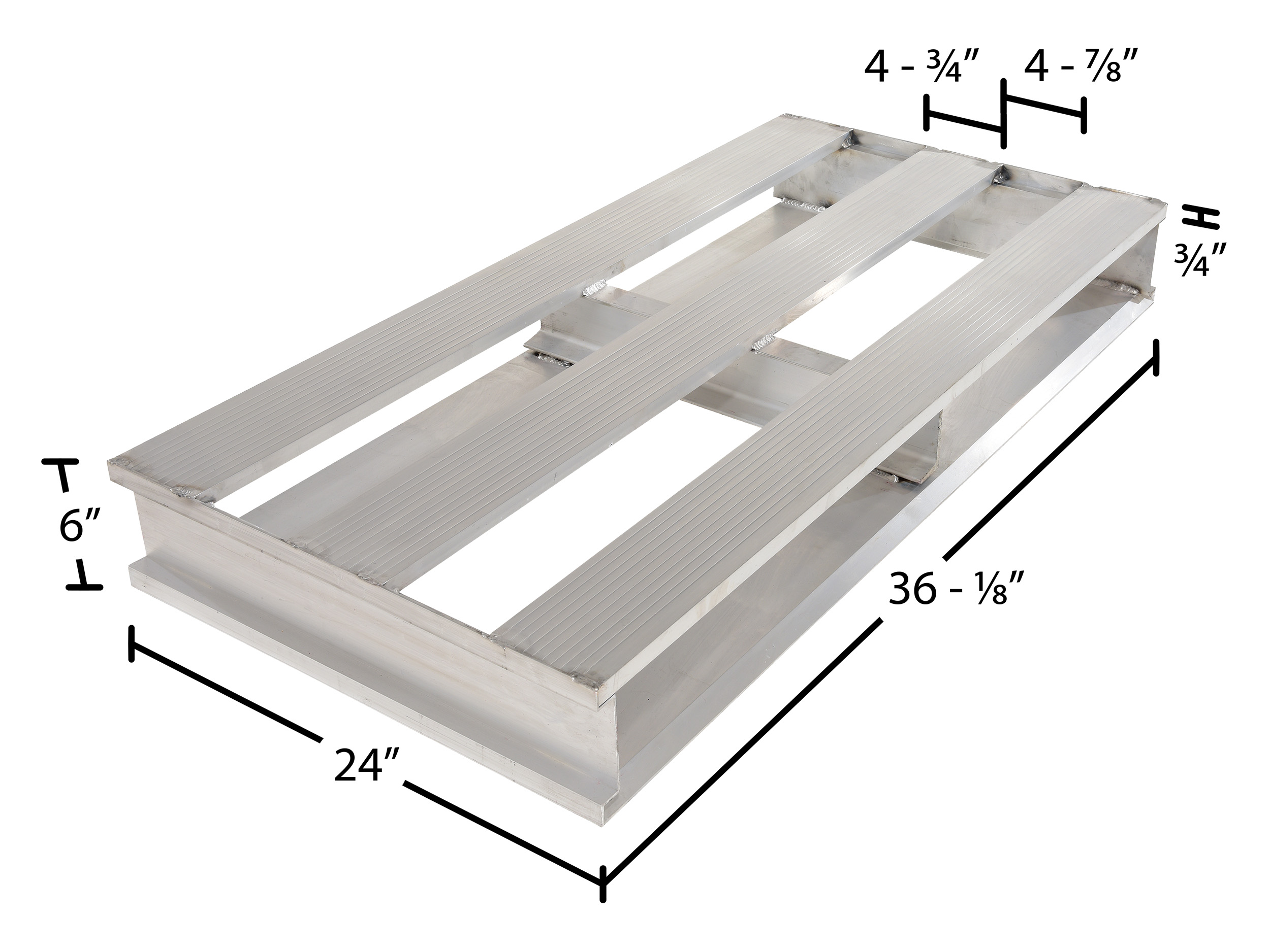 Aluminum Heavy Duty Half Pallet 24 In. x 36 In. x 6 In. 4000 Lb. Capacity SilverAn Aluminum half skid is a great asset for a variety of industries. With the half skid design, items can be chosen and fitted to a skid much closer to their size. This utilizes and maximizes space during shipping and floor space during any storage. The open design enables quick and simple cleaning, while the two-way fork openings provide quick access.