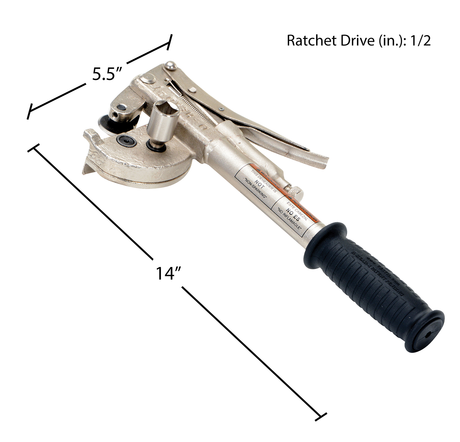 Steel Manual Drum Deheader Express Open 3 In. x 5-1/2 In. x 14 In. SilverQuickly remove the head of a steel drum with this express open manual drum Deheader! Includes vice-grip style mechanism for securely attaching unit to drum. Use only either a ½ inch manual ratchet wrench or electric drill to operate the Deheader ratchet. Do not use a pneumatic or electric impact wrench to operate the header ratchet. Warning: improper use of this drum header might result in personal injury or damage the header. Ratchet not included.