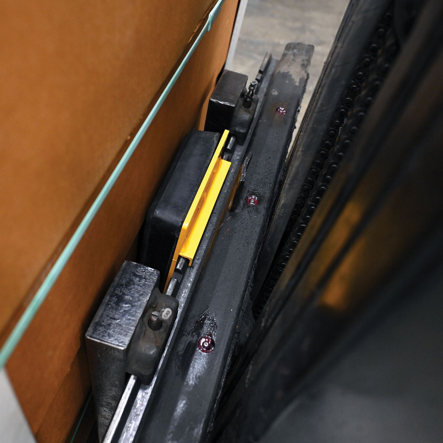 The fork truck carriage bumper is a great addition to the existing fork truck. The construction is strong and durable throughout daily use. During transportation of goods, the bumper allows for full use of forks without the worry of unwanted damage to the front of the lift.
