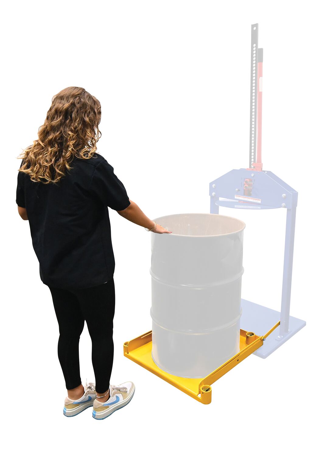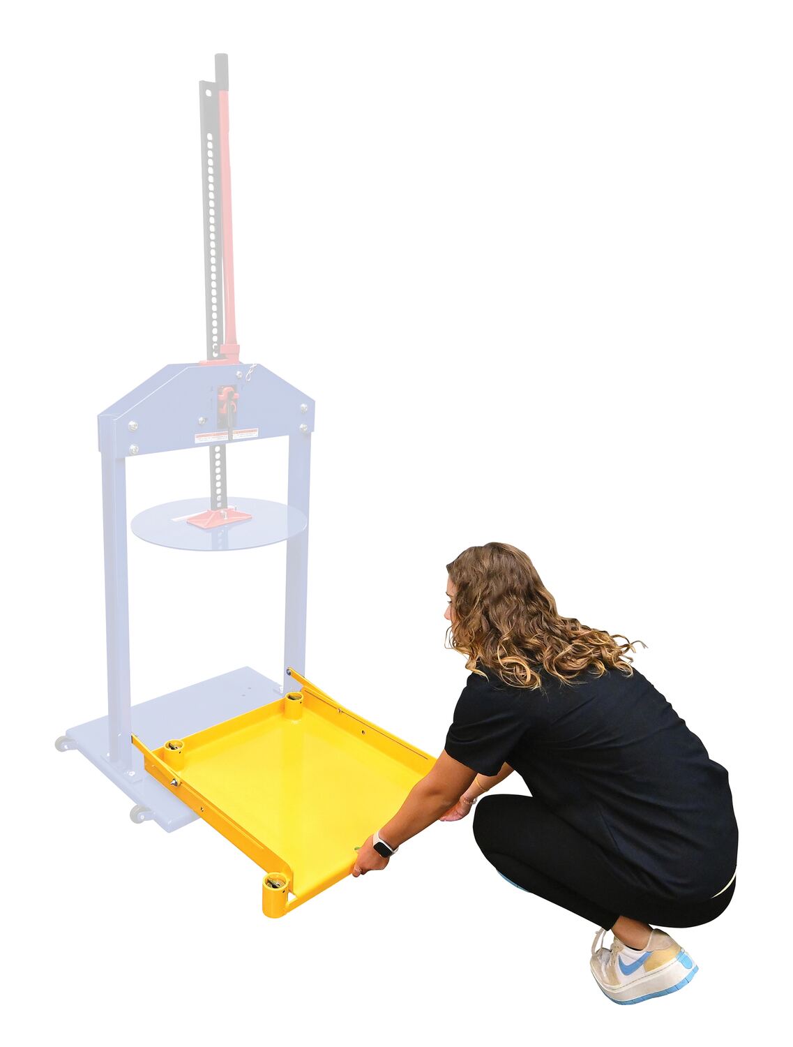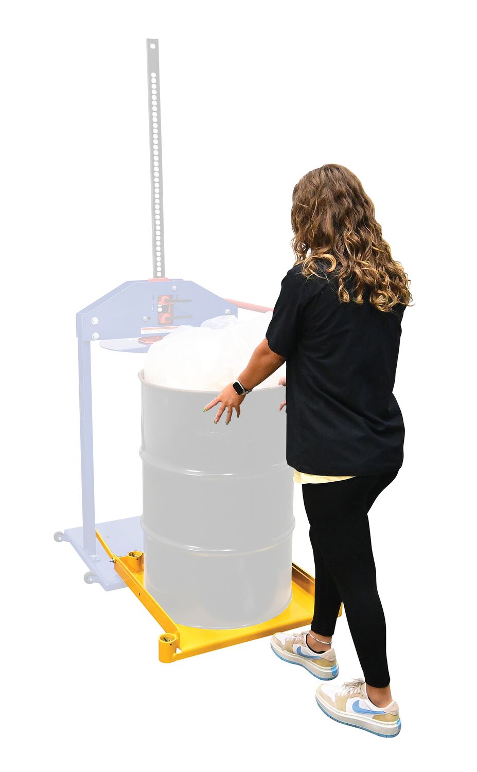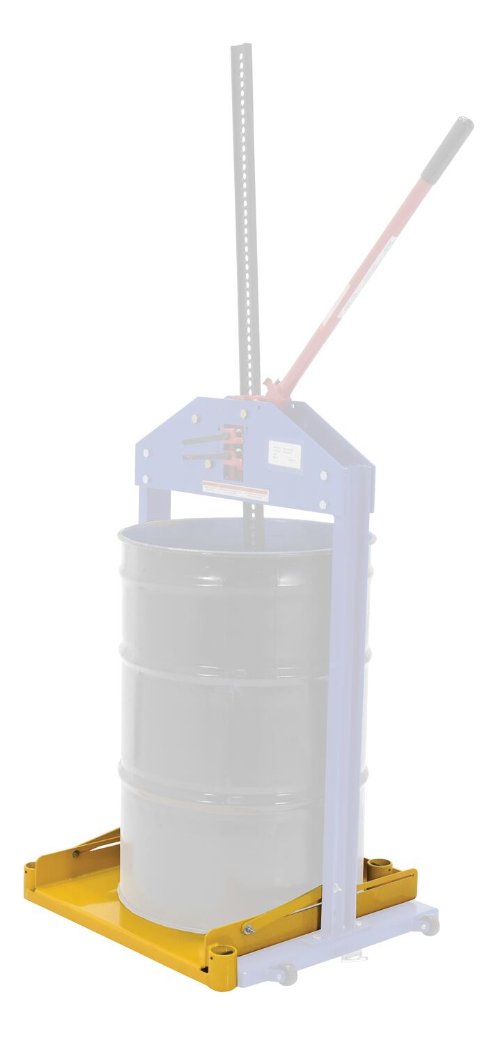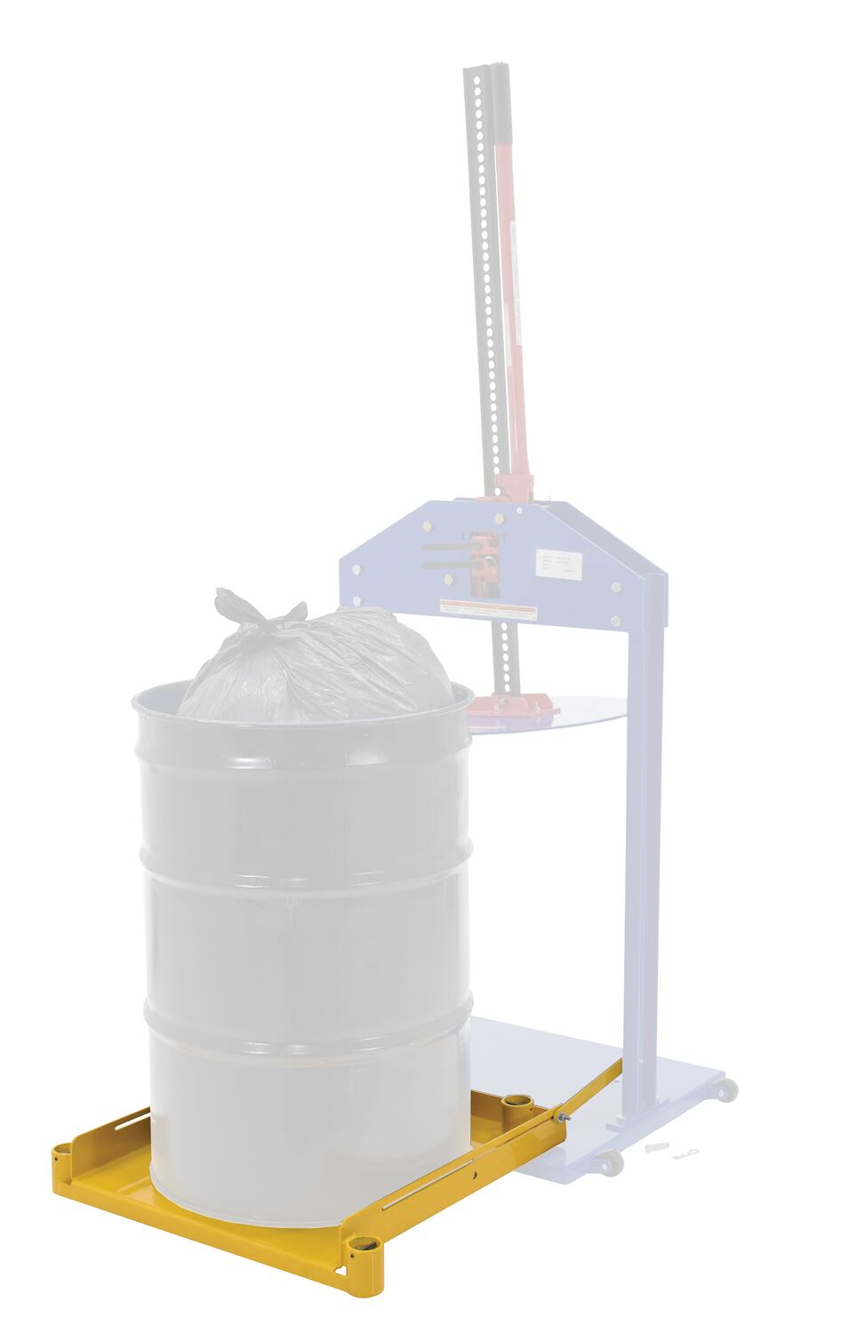 Optional roll-out base assembly for the manual trash compactor. Allows the user to easily slide heavy drums in and out of the compactor.
