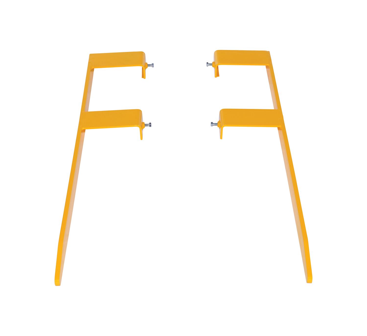 Steel Pallet Master Fork Extensions 6 In. x 48 In. YellowA pallet master fork extension provides the ability to lift and maneuver pallets of a variety of sizes. With the help of these extensions, each user is able to lift pallets that are longer than the standard size. The installation process is quick; culminating in the extension being secured directly to the fork itself. Capacity for each extension is determined by the capacity of the pallet master it is attached to.