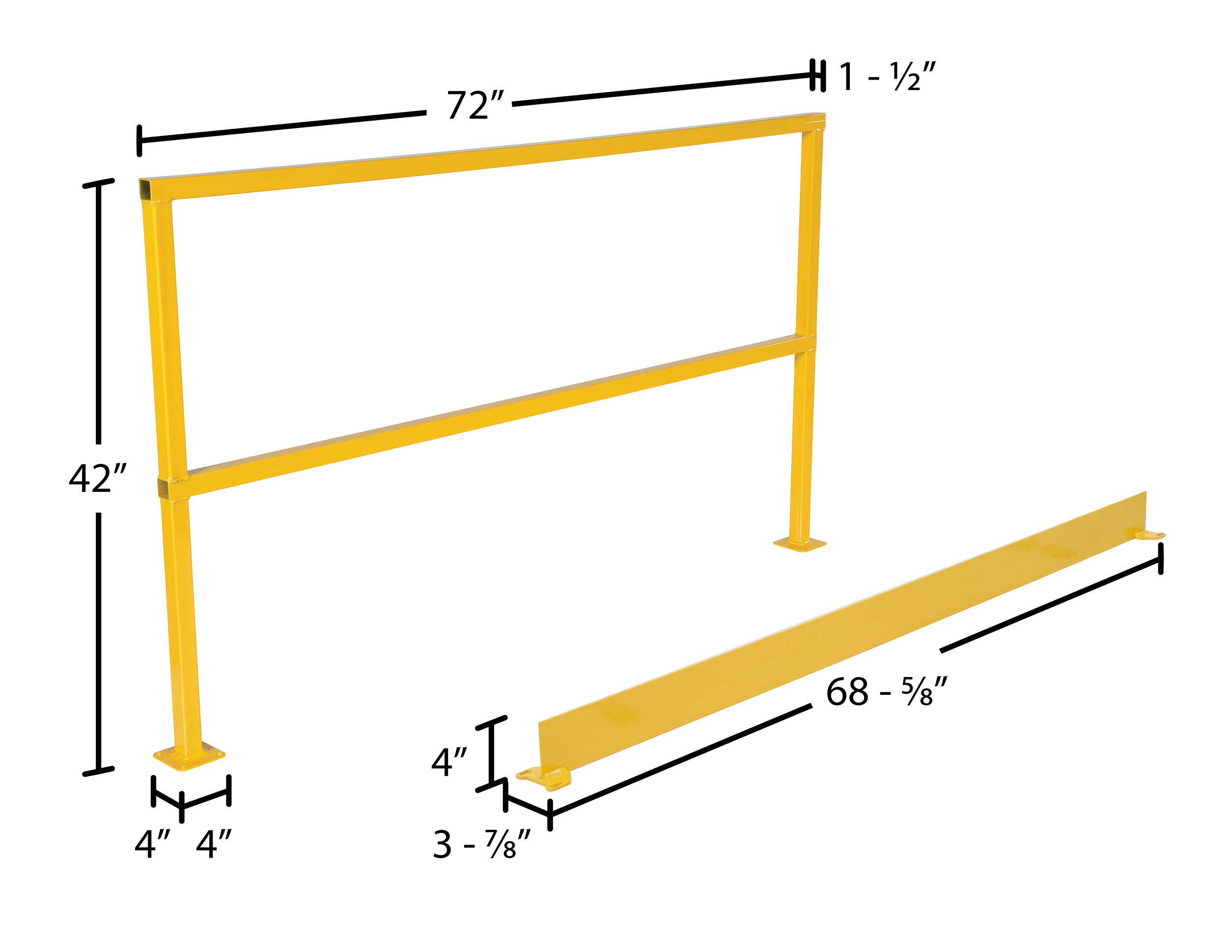 Steel Safety Handrail with Hardware and Toe Board 74-1/2 In. x 4 In. x 42 In. Yellow