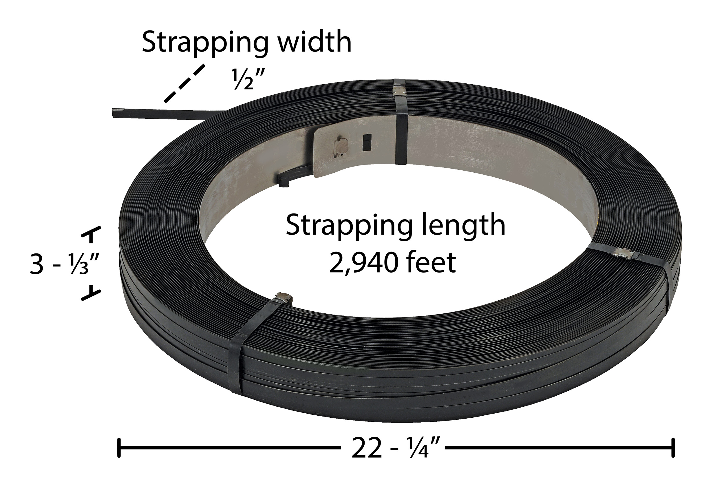 Steel Strapping 1/2 In. 2,940 Ft. 22-1/4 In. x 22-1/4 In. x 3-1/3 In. Black